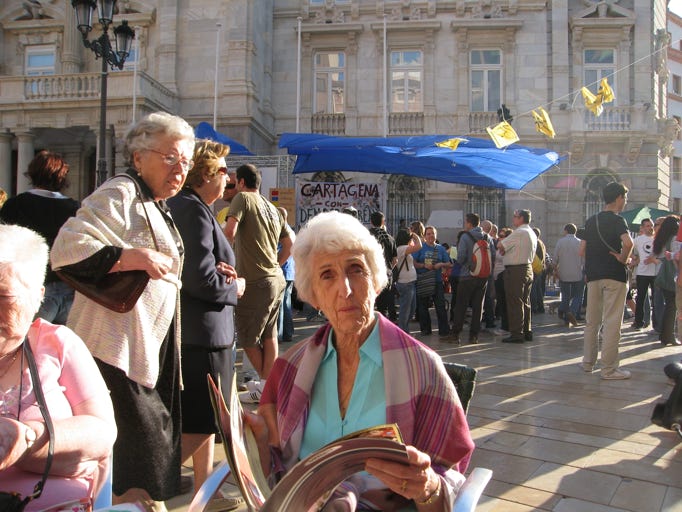 3 café con leches later we decided to walk up further until we came to the second square. I doubled back to meet Mum & Dad who’d come out of the ruins. There was some kind of protest going on in the square – I later found out it was to do with the Spanish local elections.