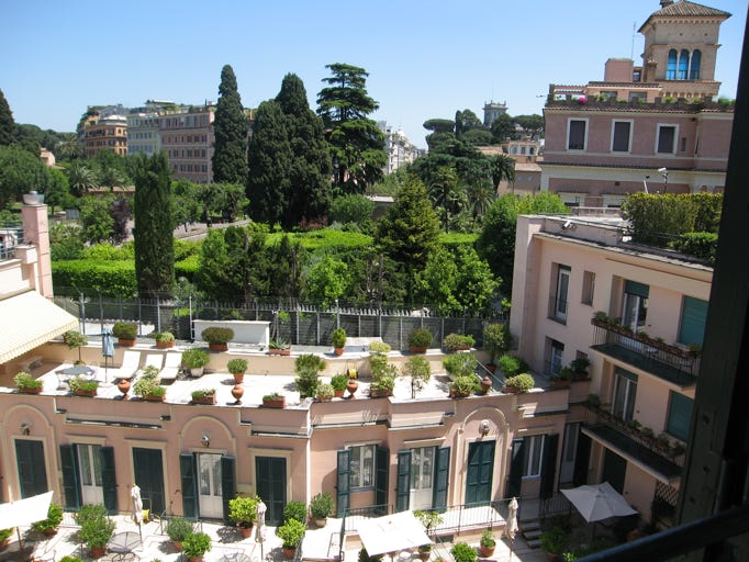 Woke up around 17.00 to plan our evening. Walked down the road to some shops which were right on Barberini – bought some nibbles and went back to Stuart’s room and sat on his terrace.