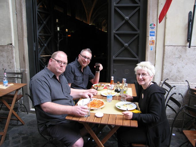 By now it was time for a spot of lunch. We met in the lobby via a quick look at Stuart’s room and wandered across to the Spanish Steps. Amazingly close to the Steps. Took us a bit of a while to figure where the lift down was and when we found it, we saw the disabled lift that takes you down to the main lift was broken. Poor Nikki had to slowly climb down two flights of stairs before we could get to the main lift.