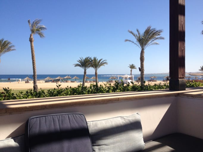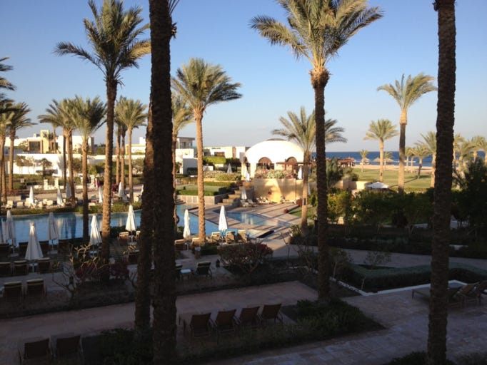 Egypt is 2 hours ahead of the UK so I was expecting to wake up at about 06.00 - in the end it was more like 08.00. Very good night’s sleep. Opened the curtains expecting to see the cloud we’d been promised on the weather forecast - and the sun was streaming in.