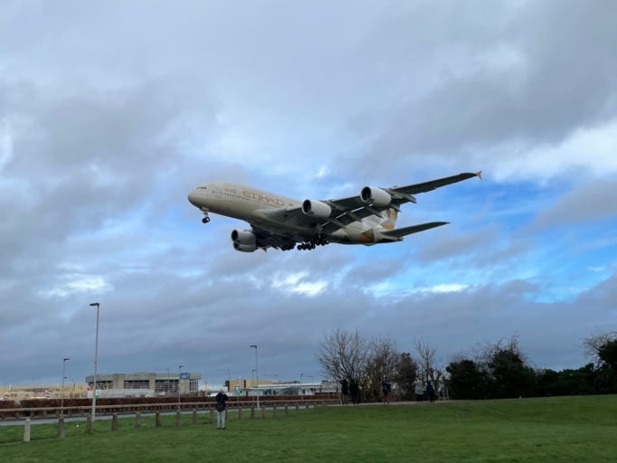 I’d checked which way the planes were landing at Heathrow and they were on 27L until 15.00 so we turned our attention to Myrtle Avenue. As usual parking was a nightmare but we found a little place on the main road and walked around. We knew there were 3 A-380s coming in around 11:45 so we were there about 10 mins before them. Absolutely freezing there - the wind had really picked up and despite big coat it was parky.