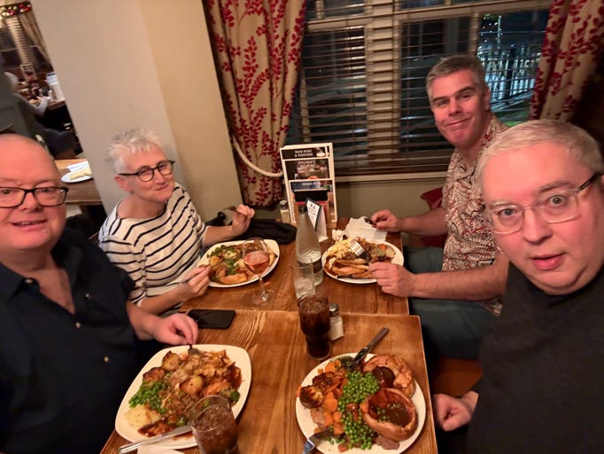 Left around 19:10 for the trip down to Langley for the Toby Carvery. Didn’t get the booth we had last year - instead we were over by the windows at the front. Very nice carvery though - even went back for seconds. Matt was on the early turn for New Year’s Eve so we dropped him back at Hounslow West Tube Station before returning to the Staybridge.