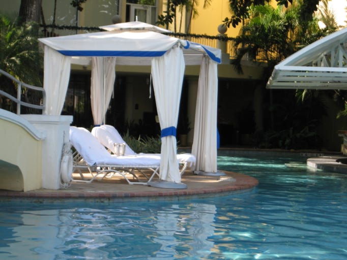 Stayed there until lunch and then decided to head back to the pool for the afternoon session. Got a Cabana again and also picked up the laptop and iPods. Launched www.lobbybobby.com as we said we would and then I fell asleep for a bit.